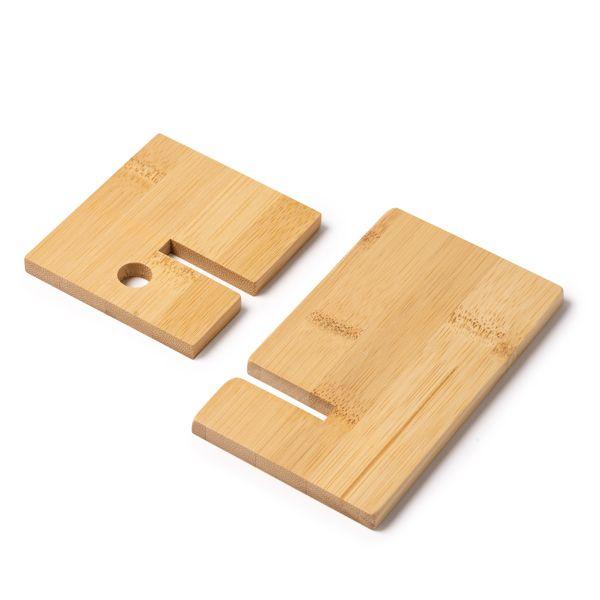 Suport de telefon mobil din bambus natural. Suport perfect pentru încărcarea cu ușurință a smartphone-ului. Slot inferior pentru cablul de încărcare. Include 2 piese ușor de asamblat