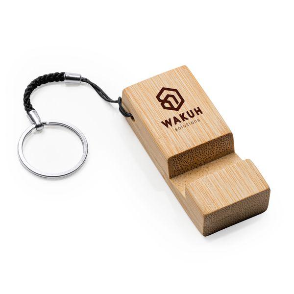 Breloc suport pentru telefonul mobil, fabricat din bambus.