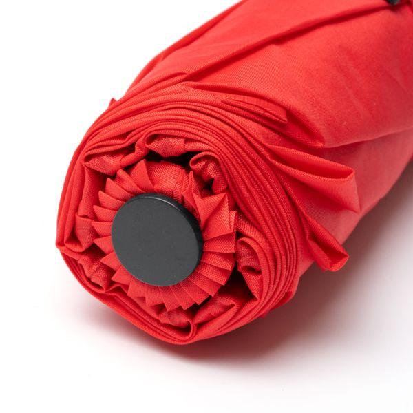 Umbrelă pliabilă de furtună cu deschidere automată și mâner din cauciuc. Material pongee 190T cu husă asortată. Tije negre din fibră de sticlă.