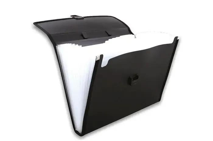Mapă-portofolio din plastic dur cu margini din țesătură. Are 12 despărțituri. Se folosește pentru depozitarea și transportarea documentelor format A4 (32*23,5*5сm).