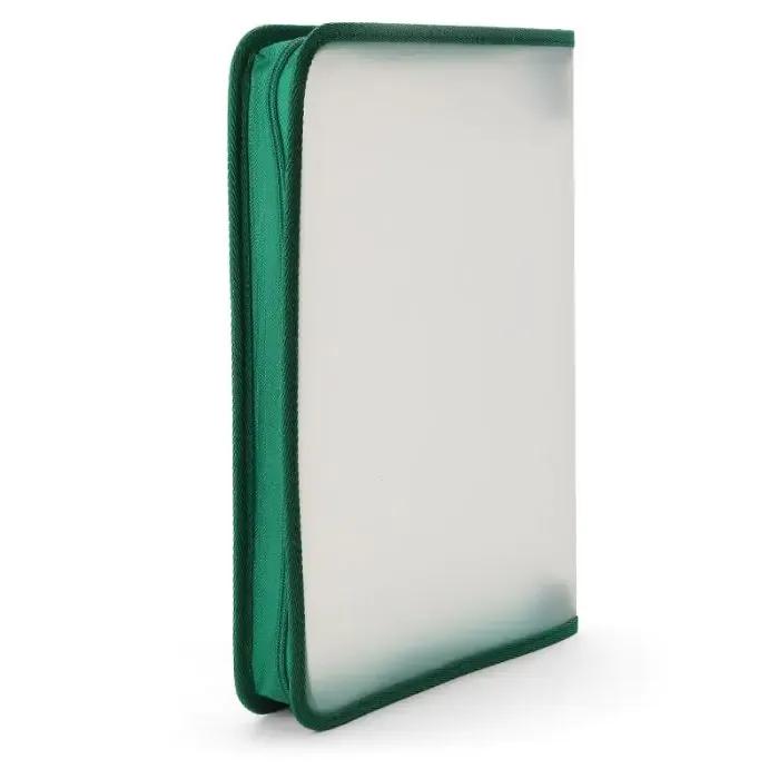 Mapă destinată depozitării și transportării documentelor, prevenind murdărirea acestora. Datorită fermoarului, întregul conținut al mapei rămâne înăuntru. Marginile sunt cusute cu material textil.