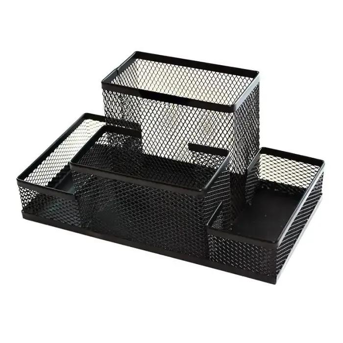 Suport de masa, din metal, tip plasa cu 4 compartimente, negru