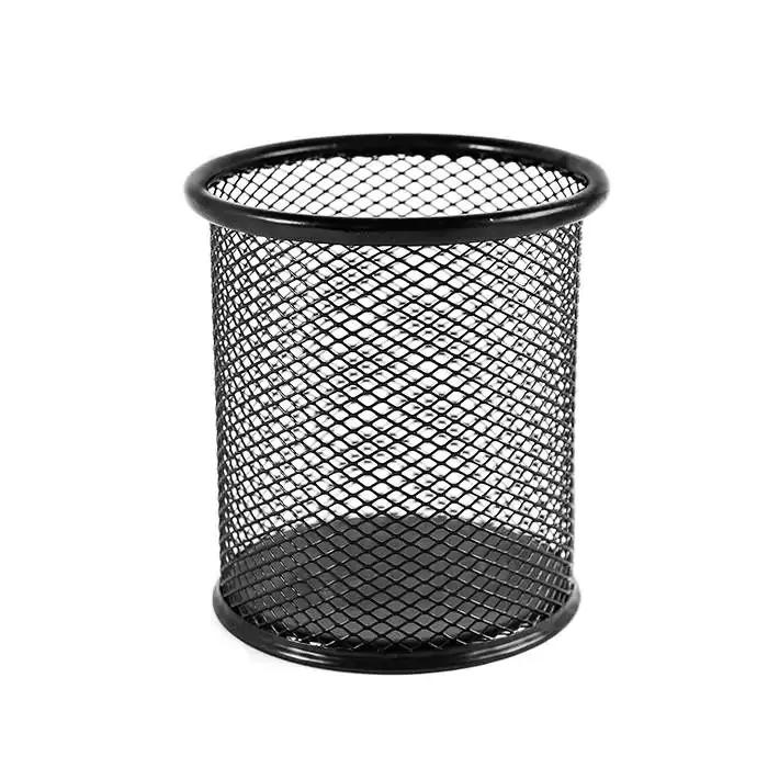 Suport pentru pixuri, rotund, din metal, tip plasa, negru