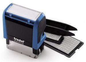 Parametri: Numărul maxim de caractere din linia fontului principal: 28 Numărul maxim de caractere pe fiecare linie pentru selectarea textului: 19 Dimensiune: 47 x 18 mm. Numărul de linii: 4. Set: Casierie cu litere, numere și simboluri (TRODAT 6005 - Font 3.1 și 2.2 mm. 360 de caractere TRODAT 6006 - font latin, numere și abrevieri ) - 2 buc. Suport TRODAT TYPO PRINTY 4.0 - 1 buc. Pernuță albastră - 1 buc. Pensulă - 1 buc.