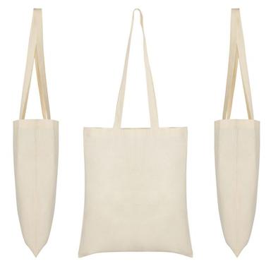 Хлопковая сумка натурального цвета, с длинной ручкой из ленты того же цвета.